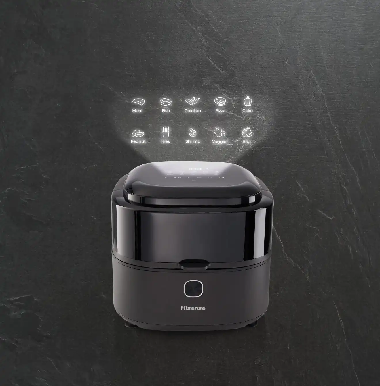 Zračni cvrtnik Hisense, pripravlja zdrave različice najljubših jedi vaše družine brez ali z nizko vsebnostjo maščob, pri tem pa uporablja le malo ali nič olja. Vroč zrak se hitro razporedi v ciklonskem načinu, kar vaši hrani daje popoln pečat. Če želite hrustljav okus, uporabite le kapljico olja. Cvrtnik z vročim zrakom, lahko uporabite tudi za segrevanje sestavin. Uživajte v svojih najljubših ocvrtih jedeh z do 85 % manj maščobe kot pri običajnem cvrtju.